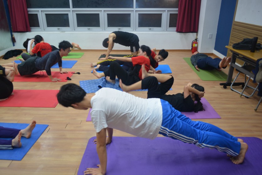 서로서로 도와주며 스트레칭을 하는
