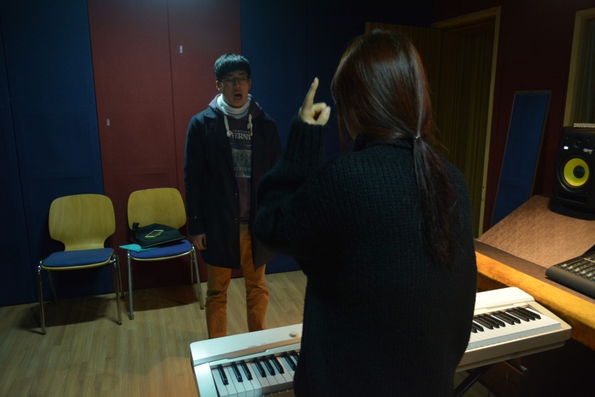 보컬수업 장면 발표를 하고 있는
