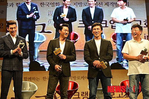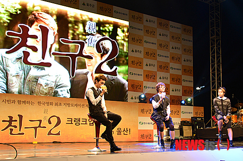 24일 오후 울산광역시 울주군 간절곶에서 열린 영화 '친구2'(곽경택 감독, 트리니티 엔터테인먼/MBC아카데미광주연극음악원 제작) 크랭크업 보고회에는 곽경택 감독을 비롯 배우 유오성, 주진모, 김우빈이 참석해 자리를 빛냈다