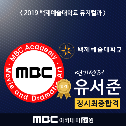 <2019학년도 실시간 합격자 발표> 백제예술대학교 정시 최종합격 - 연기센터 유서준