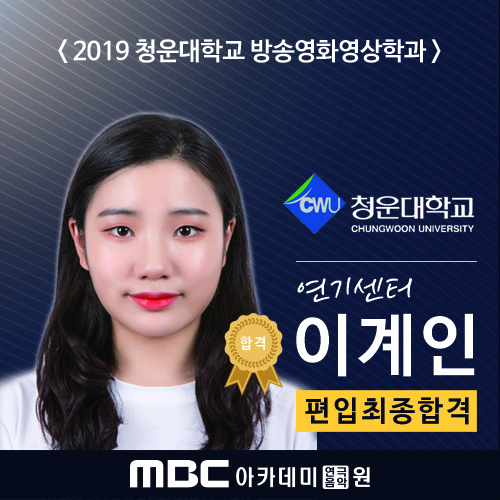 <2019학년도 실시간 합격자 발표> 청운대학교 편입 최종합격 - 연기센터 이계인