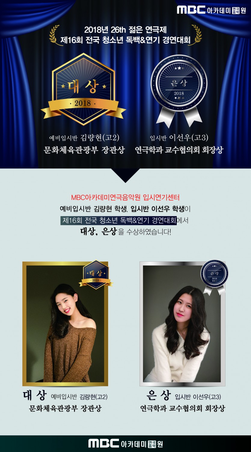 2018년 젊은연극제 전국청소년 독백&연기 경연대회 [대상] [은상] 쾌거
