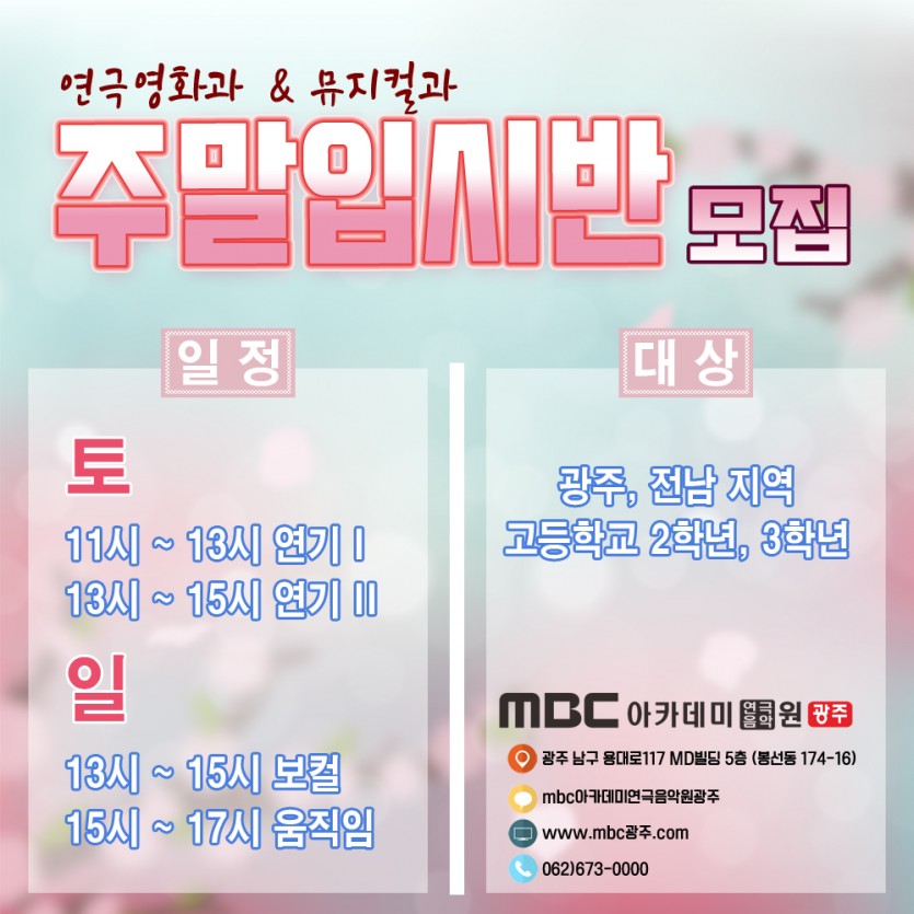 주말입시반 모집 페이지 정보 작성자 관리자 댓글 0건 조회 31,908회 작성일 18-03-21 18:53 본문 주말입시반 모집 목록 이전글 주말입시반 모집 - 다녀보고 결정하자! 18.03.22 다음글 다녀보고 결정하자 - 수강료 무료 이벤트 18.03.08