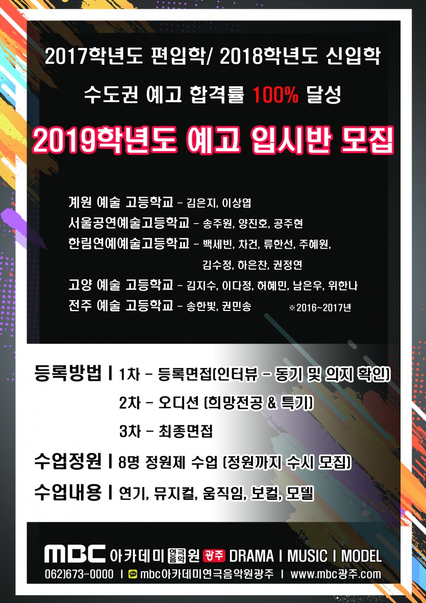 [드라마센터] 2018년 예고입시반 모집 페이지 정보 작성자 관리자 댓글 0건 조회 32,228회 작성일 17-12-02 19:18 본문 2018년 예고입시반 모집 목록 이전글 진로진학 체험수업에 방문해주신 여러분 감사드립니다. 17.12.06 다음글 [뮤직센터] 직장인! 싱어송라이터 되다! 17.12.01