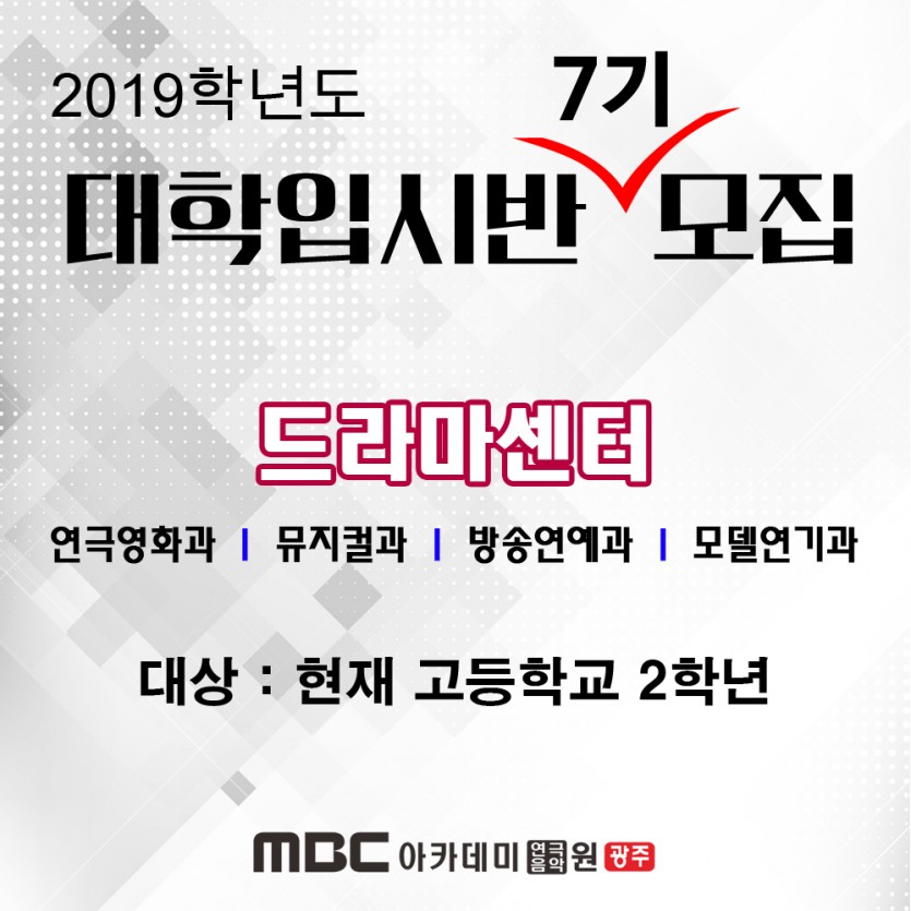 [드라마센터] 2019학년도 대학입시반 모집 페이지 정보 작성자 관리자 댓글 0건 조회 32,279회 작성일 17-10-31 21:56 본문 드라마센터 2019학년도 대학입시반 모집 목록 이전글 설립 20주년 기념 장학생 선발 오디션 17.11.15 다음글 [드라마센터] 김수정학생 한림예고 편입학 합격! 17.09.27
