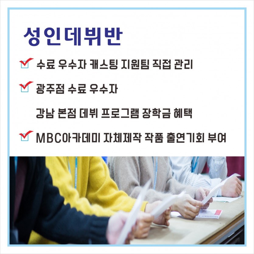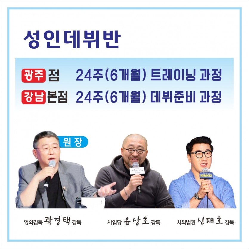 [드라마센터] 성인데뷔반 모집 이벤트 페이지 정보 작성자 관리자 댓글 0건 조회 30,761회 작성일 17-05-01 19:46 본문 성인데뷔반 모집 이벤트 5/1 ~ 5/31 목록 이전글 [드라마센터] 주말종합연기반 모집 17.05.02 다음글 MBC아카데미연극음악원[광주] 꿈길 "꿈꾸는 아이들의 길라잡이" 17.04.25