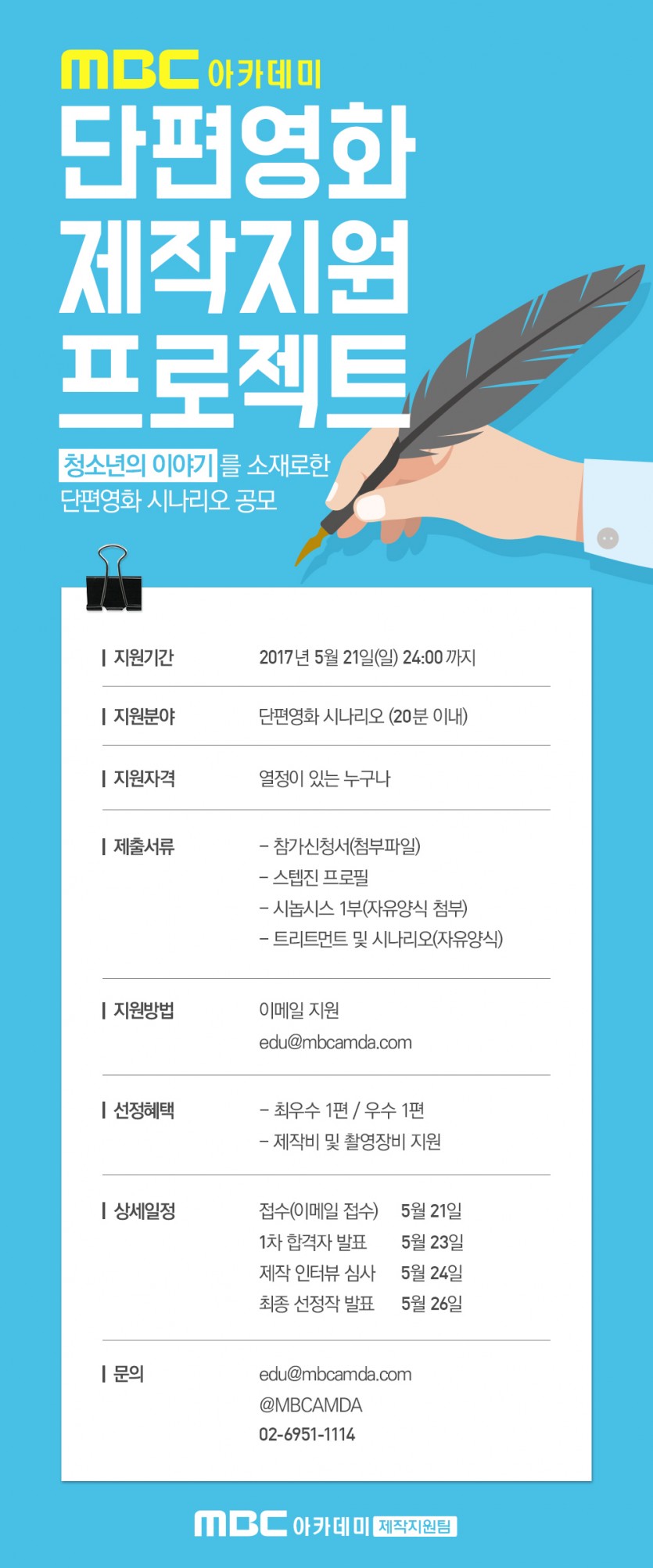 [드라마센터]단편영화제작지원프로젝트 페이지 정보 작성자 관리자 댓글 0건 조회 31,839회 작성일 17-05-08 19:39 본문 첨부파일 단편영화_제작지원_프로젝트_참가신청서.hwp (49.0K) 290회 다운로드 | DATE : 2017-05-08 21:24:34 목록 이전글 2014학년~2017학년 | 드라마센터/뮤직센터/모델연기센터 합격자명단 17.05.11 다음글 [드라마센터]5월지정도서-청소년독백대회 도서 17.05.06
