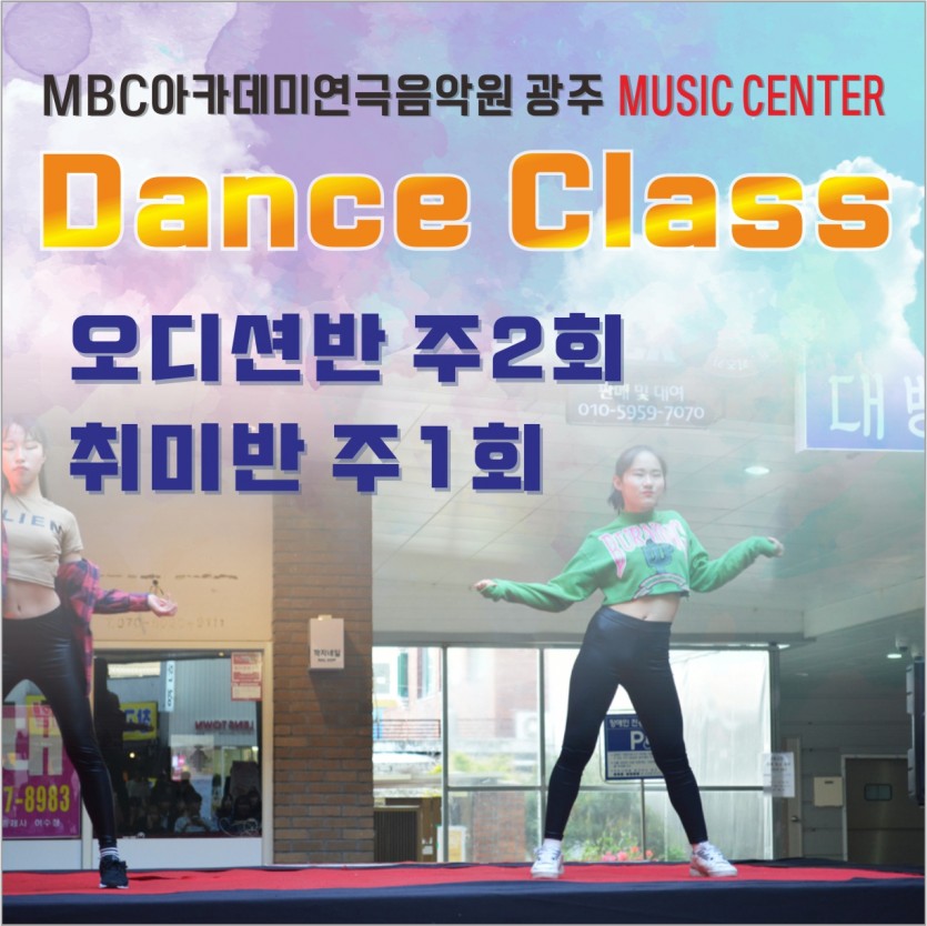 [뮤직센터]Dance Class 모집 페이지 정보 작성자 관리자 댓글 0건 조회 31,523회 작성일 17-05-15 19:14 본문 MBC아카데미연극음악원[광주] MUSIC CENTER Dance Class 모집 목록 이전글 1등은 다르다 -대학입시반&재입시반- 17.05.24 다음글 2014학년~2017학년 | 드라마센터/뮤직센터/모델연기센터 합격자명단 17.05.11