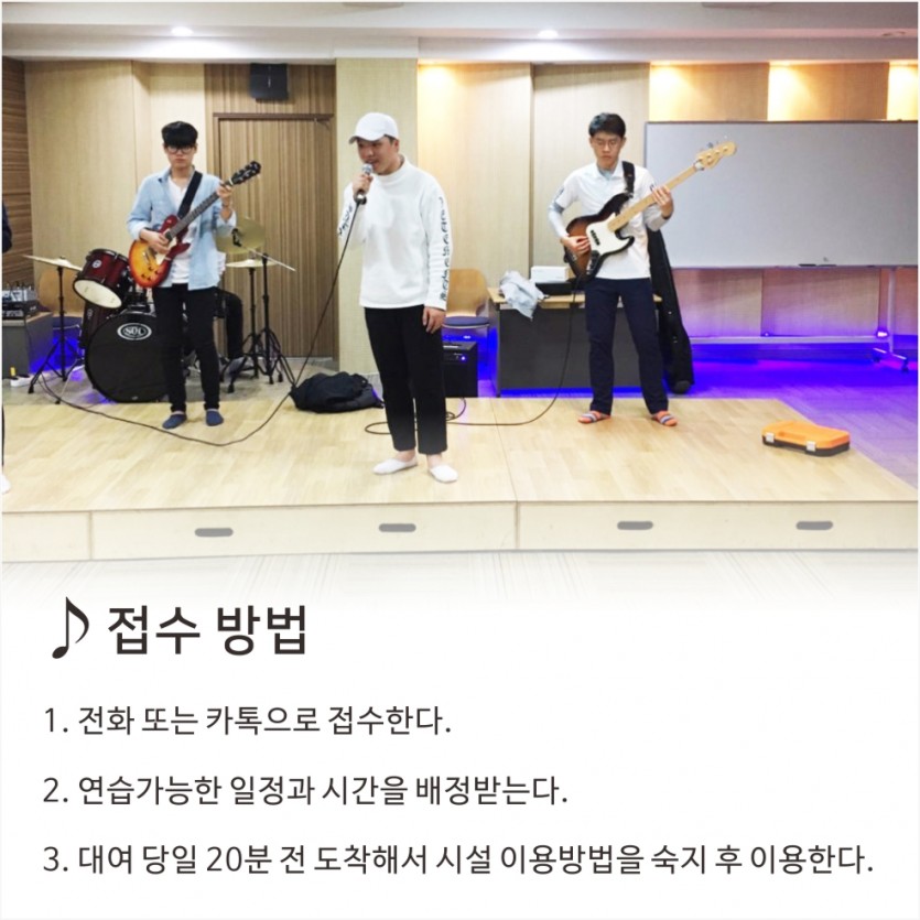 [뮤직센터]합주시설 무료 대여 페이지 정보 작성자 관리자 댓글 0건 조회 30,873회 작성일 17-04-22 16:37 본문 합주시설 무료대여! 관련문의는 전화 또는 카카오톡으로! 목록 이전글 MBC아카데미연극음악원[광주]가 진행하는 중간고사 특별 이벤트 17.04.24 다음글 제 15회 전국청소년 독백연기 경연대회 17.04.11
