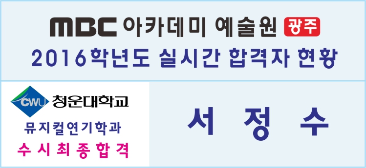 2016학년도 실시간 합격자 현황 [청운대] 페이지 정보 작성자 관리자 댓글 0건 조회 28,171회 작성일 15-11-05 18:15 본문 2016학년도 실시간 합격자 현황 [청운대] 목록 이전글 2016학년도 실시간 합격자 현황 [대진대] 15.11.06 다음글 2016학년도 실시간 합격자 현황 [동아방송예대] 15.11.04