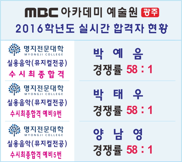 2016학년도 실시간 합격자 현황 [명지전문] 페이지 정보 작성자 관리자 댓글 0건 조회 27,340회 작성일 15-10-19 20:36 본문 2016학년도 실시간 합격자 현황 목록 이전글 2016학년도 실시간 합격자 현황 [세종대] 15.10.19 다음글 2016학년도 실시간 합격자 현황 [수원대] 15.10.19