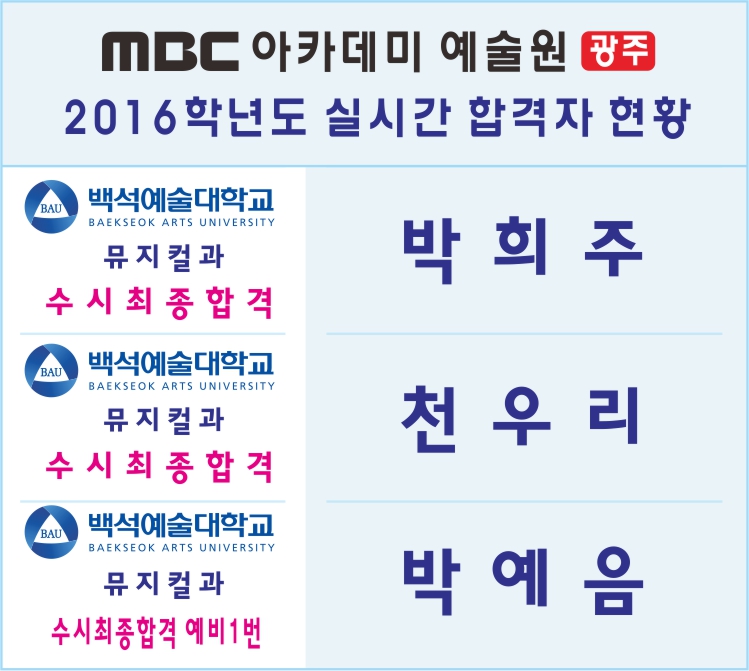 2016학년도 실시간 합격자 현황 [백석예대] 페이지 정보 작성자 관리자 댓글 0건 조회 27,599회 작성일 15-10-30 19:08 본문 2016학년도 실시간 합격자 현황 [백석예대] 목록 이전글 2016학년도 실시간 합격자 현황 [예원예대] 15.10.30 다음글 2016학년도 실시간 합격자 현황 [수원과학대] 15.10.28