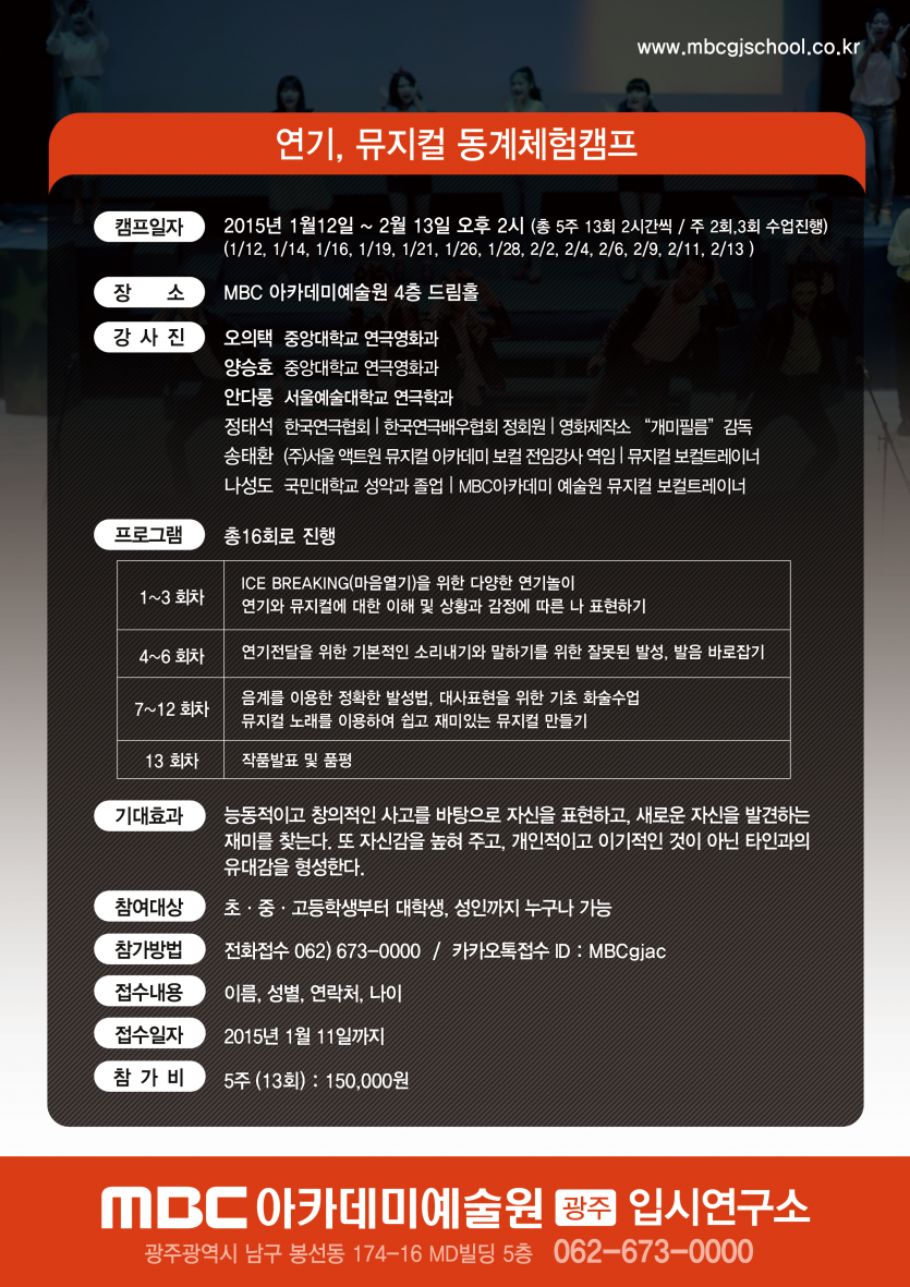 참가방법 전화접수 062)673-0000/ 카카오톡접수 ID:MBCgjac
