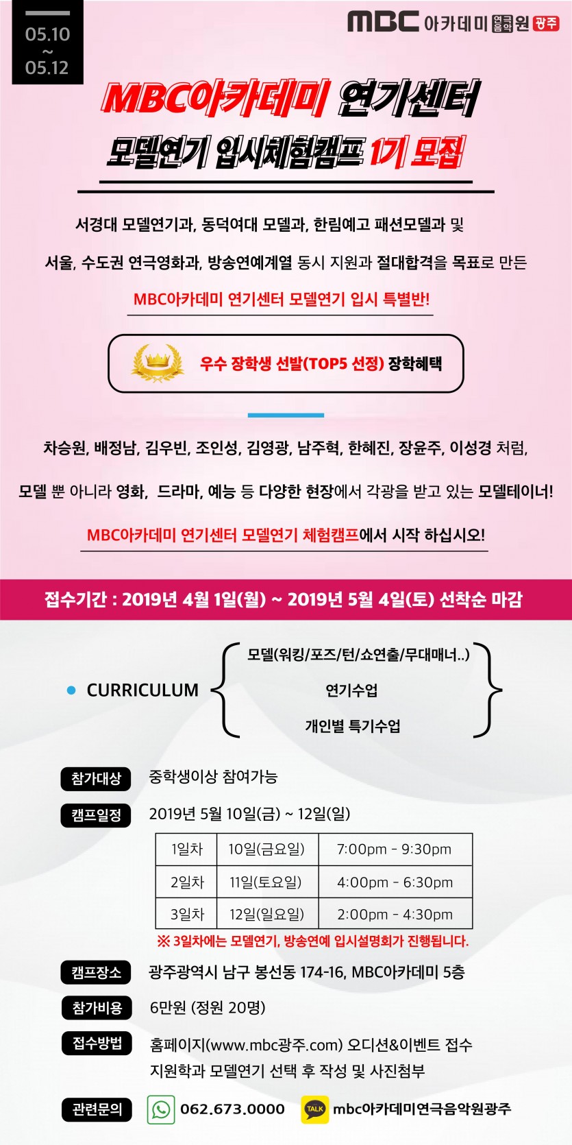 모델연기 입시체험캠프 1기 페이지 정보 작성자 관리자 댓글 0건 조회 26,119회 작성일 19-04-06 18:32 본문 오디션&이벤트 접수에서 지원학과 모델연기를 선택 후 작성 및 사진첨부 해주시면 됩니다! 목록 이전글 예비입시반 입시체험 수업 19.04.23 다음글 신학기 특별 EVENT - 다녀보고 결정하자 19.04.02