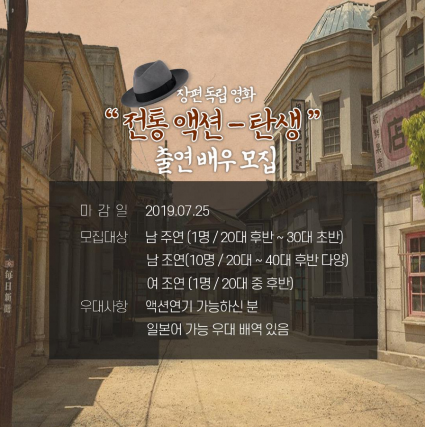 § 우대: 액션 연기가 가능하신 분, 일본어 가능자 우대 배역 있음